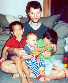 We got married in April 1997, and immediately started trying to have a family. At the end of April, Gregg had jaw surgery and was wired shut for 5 weeks. In the late fall we decided to start infertility treatments. These plans had to be put on hold because we discovered that Gregg needed to have open-heart surgery to repair a severely defective mitral valve. At this point we also started discussing adoption. We felt that we should try to have a biological child first, and whether that was successful or not, to also adopt. The infertility treatments were not a success, so we started getting our paperwork together for adoption. Because we had been prepared to have twins through the infertility treatments, we decided that we would ask to adopt two children, a boy and a girl.