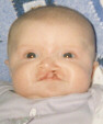 Hannah was born with a bilateral cleft lip and palate. We knew via ultrasound ahead of time about it. Shewent through treatment with an orthodontist that specializes in babies with clefts and prepared her with her lip surgery. Hannah has had two surgeries so far, lip repair in April 2005 and palate repair in October 2005. Hannah is a very happy and active toddler!!